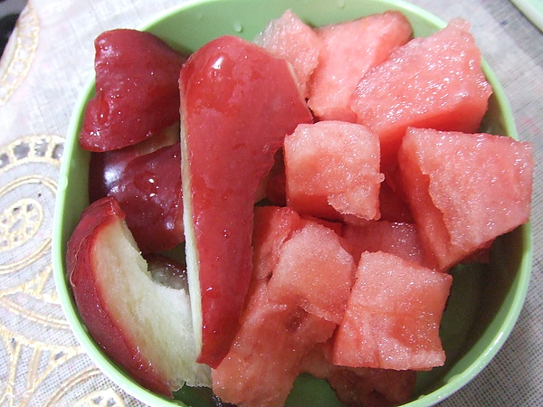 飯後水果: 西瓜跟蓮霧,現在的西瓜真的很甜耶!這蓮霧也是早上去市場買的,好像是黑鑽石還是什麼的也是超甜的。