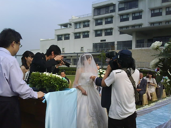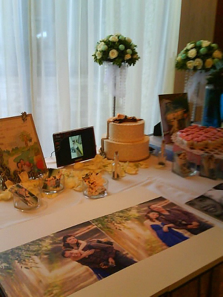 婚禮佈置一角.因為沒帶到相機用手機拍的效果不是很好.印象深刻的是他們有把去登記結婚也拍照做成紀錄,
