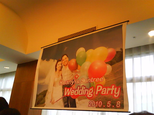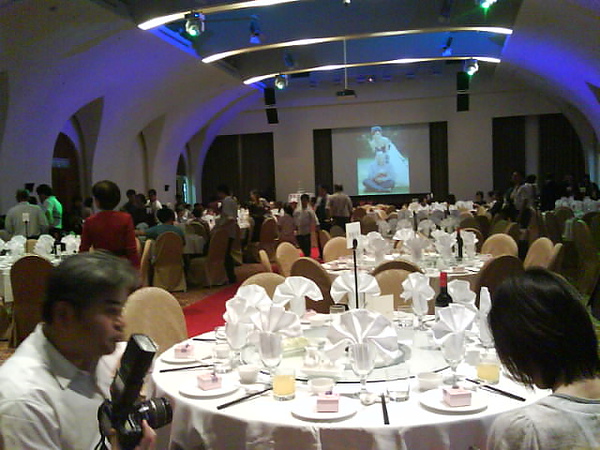 宴會場所。算是佈置的簡單隆重。新人很有心的準備了很多小時候的生活點滴。交往種種等。甚至對父母念出一封感人的信,我都感動的哭了。新人在與伴娘們一起表演 nobody..sorry sorry等,搞笑演出讓人印象深刻.新郎倌是個內向的人,要他這樣表演應該事先有經過很大的掙扎.呵呵!